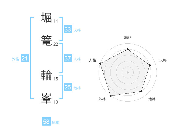 堀篭 輪峯さんを姓名の画数から五運を鑑定