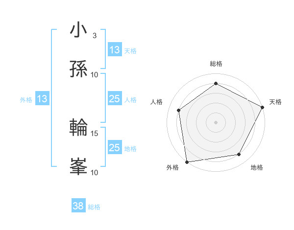 小孫 輪峯さんの外格は13画の5点!