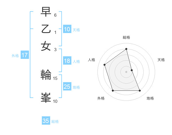 早乙女 輪峯さんの総格は35画の4点!