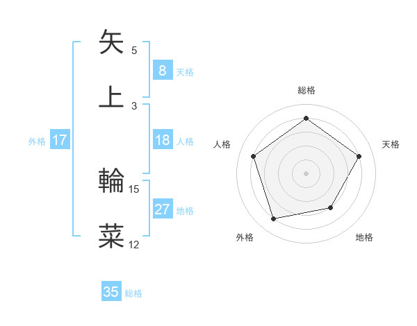 矢上 輪菜さんを姓名の画数から五運を鑑定