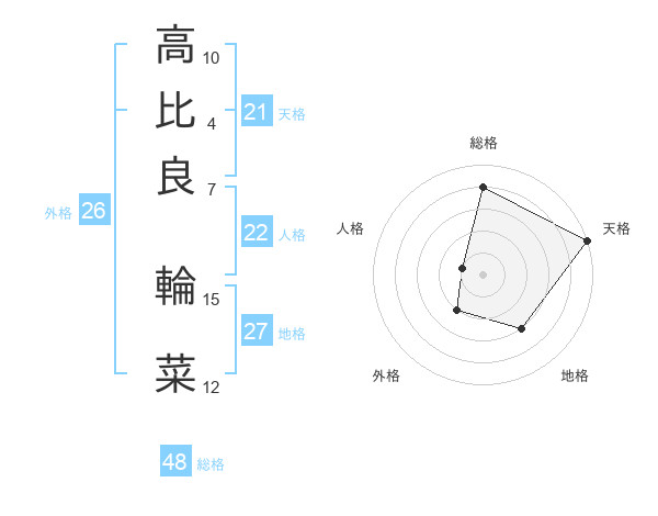 高比良 輪菜さんの総格は48画の4点!