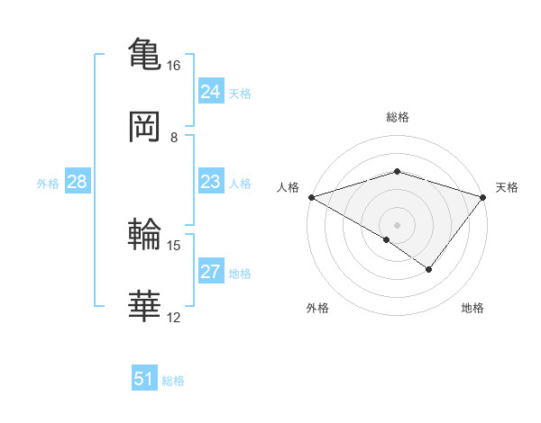 亀岡 輪華さんの総格は51画の3点!