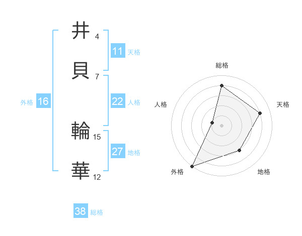 井貝 輪華さんを姓名の画数から五運を鑑定