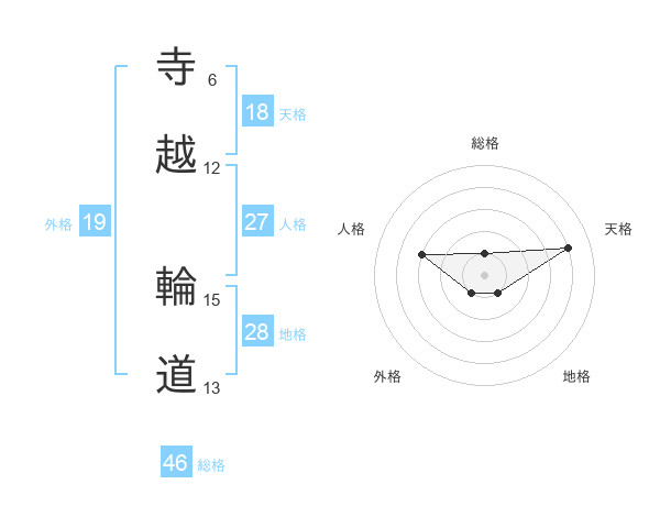 寺越 輪道さんを姓名の画数から五運を鑑定