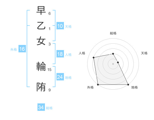 早乙女 輪陏さんの総格は34画の2点