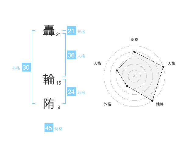 轟 輪陏さんの総格は45画の4点!