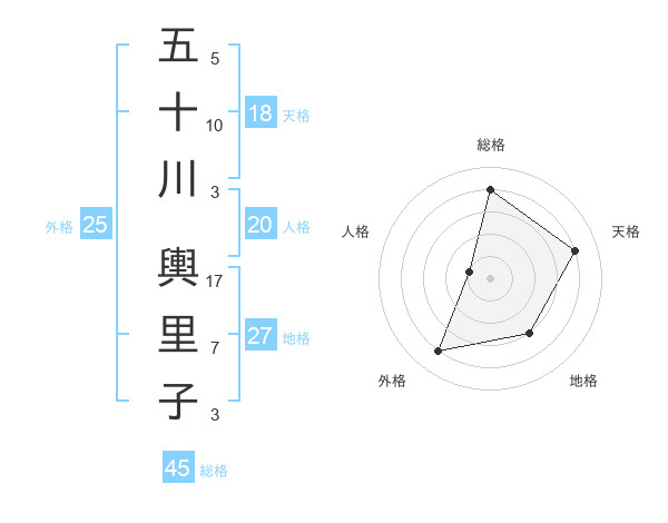 五十川 輿里子さんを姓名の画数から五運を鑑定