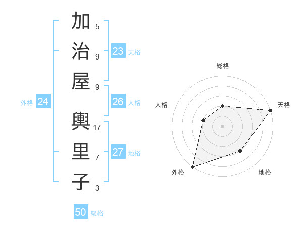加治屋 輿里子さんを姓名の画数から五運を鑑定