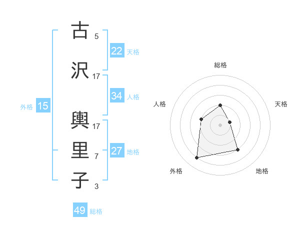 古沢 輿里子さんを姓名の画数から五運を鑑定