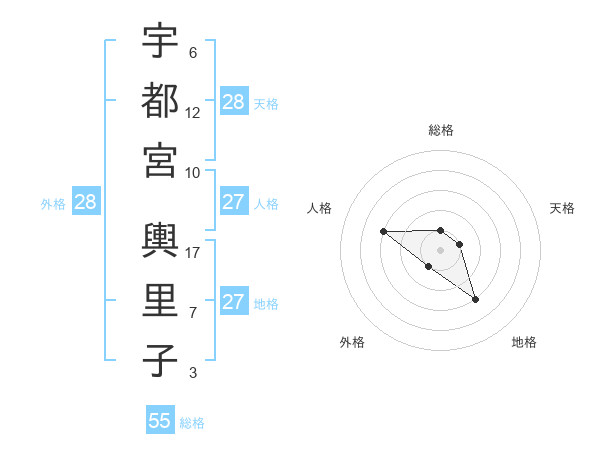 宇都宮 輿里子さんの天格は28画の1点!