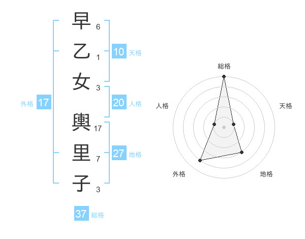 早乙女 輿里子さんを姓名の画数から五運を鑑定