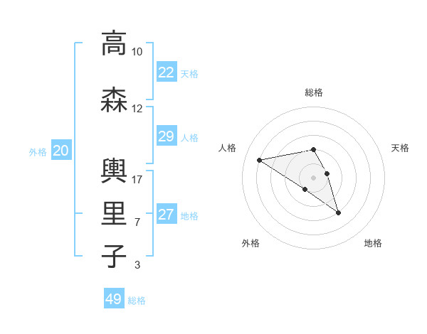 高森 輿里子さんを姓名の画数から五運を鑑定
