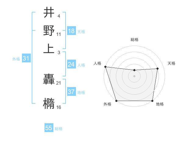 井野上 轟橢さんを姓名の画数から五運を鑑定