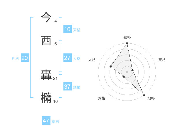 今西 轟橢さんを姓名の画数から五運を鑑定
