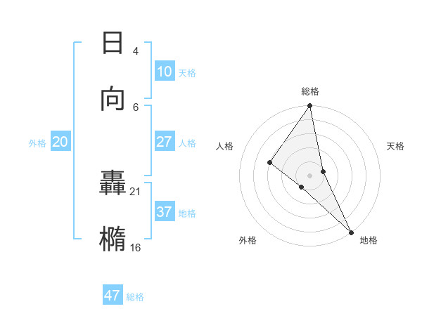 日向 轟橢さんを姓名の画数から五運を鑑定