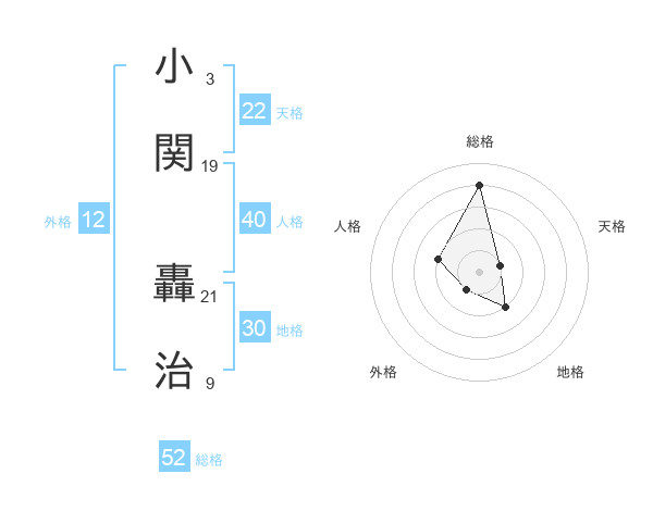 小関 轟治さんの総格は52画の4点!