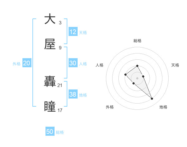 大屋 轟瞳さんの外格は20画の1点!