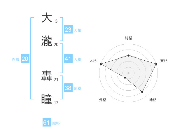 大瀧 轟瞳さんを姓名の画数から五運を鑑定