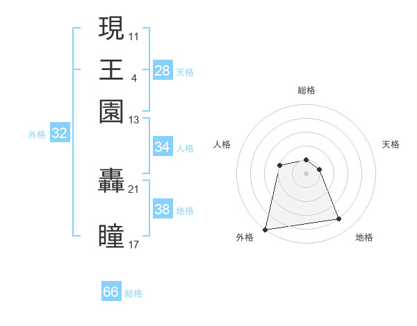 現王園 轟瞳さんを姓名の画数から五運を鑑定