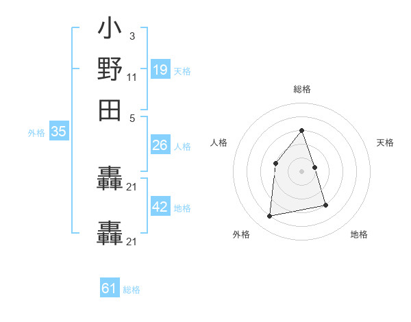 小野田 轟轟さんを姓名の画数から五運を鑑定