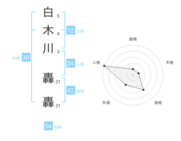 白木川 轟轟さんを姓名の画数から五運を鑑定