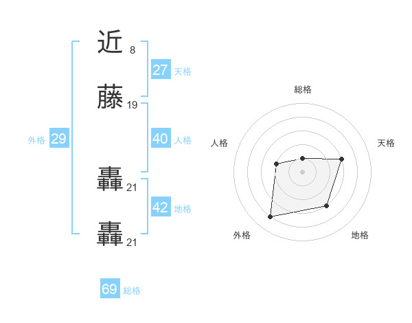 近藤 轟轟さんの総格は69画の1点