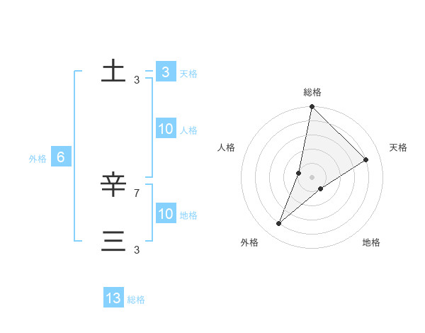 土 辛三さんの総格は13画の5点!