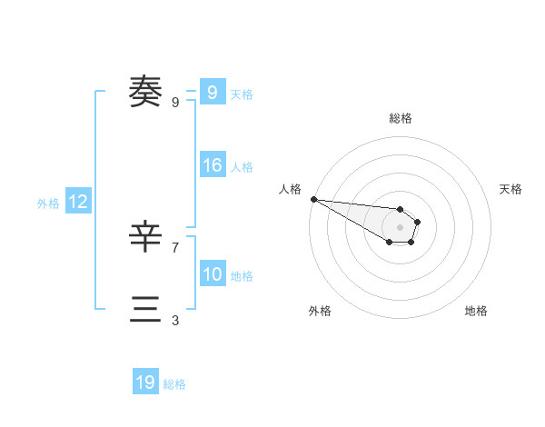 奏 辛三さんの外格は12画の1点!