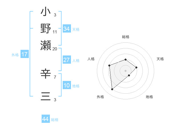 小野瀬 辛三さんの総格は44画の2点!