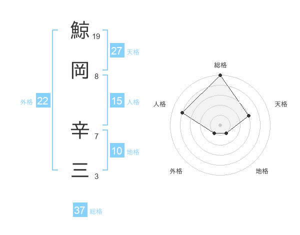 鯨岡 辛三さんの総格は37画の5点!