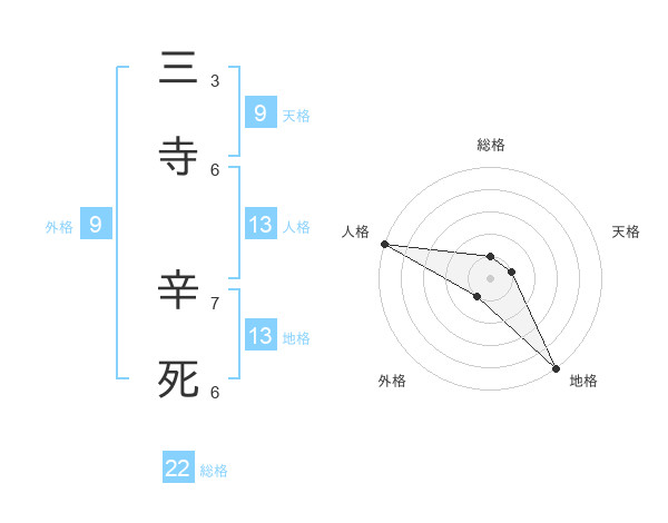 三寺 辛死さんの総格は22画の1点!