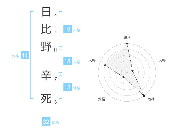 日比野 辛死さんを姓名の画数から五運を鑑定