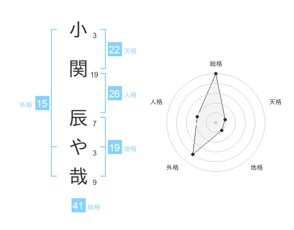 小関 辰や哉さんを姓名の画数から五運を鑑定
