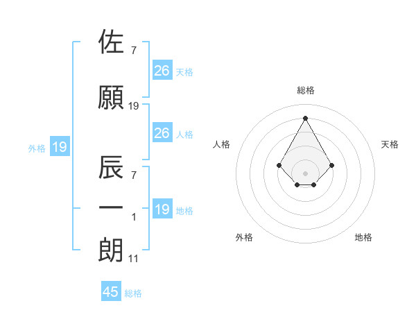 佐願 辰一朗さんの総格は45画の4点!