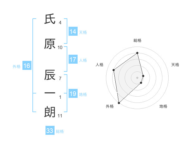 氏原 辰一朗さんの天格は14画の1点!