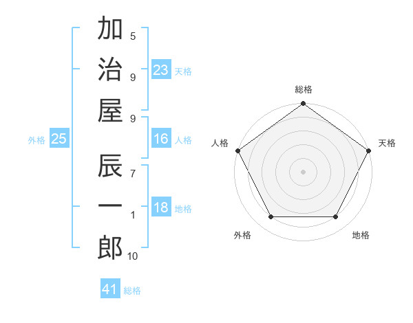 加治屋 辰一郎さんの天格は23画の5点!