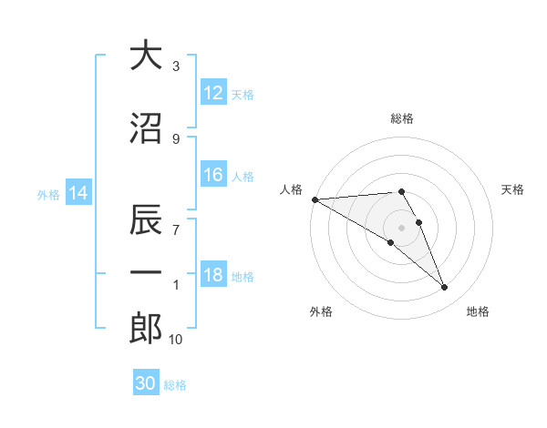 大沼 辰一郎さんを姓名の画数から五運を鑑定