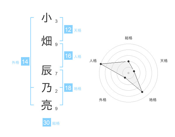 小畑 辰乃亮さんを姓名の画数から五運を鑑定