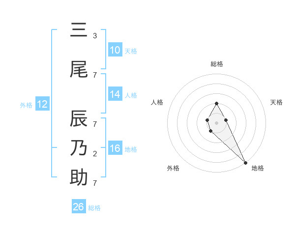 三尾 辰乃助さんを姓名の画数から五運を鑑定