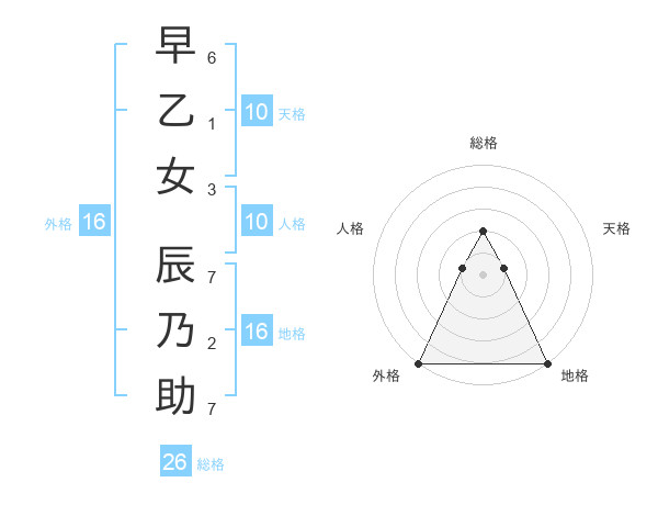 早乙女 辰乃助さんを姓名の画数から五運を鑑定