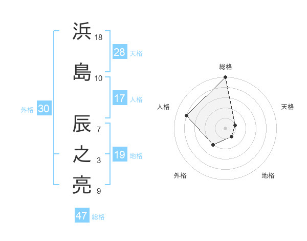 浜島 辰之亮さんを姓名の画数から五運を鑑定