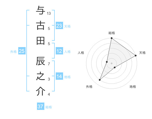 与古田 辰之介さんの総格は37画の5点