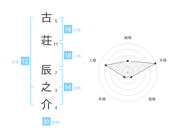 古荘 辰之介さんを姓名の画数から五運を鑑定