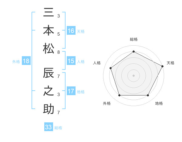 三本松 辰之助さんを姓名の画数から五運を鑑定