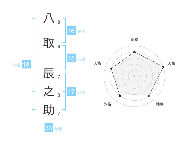 八取 辰之助さんの総格は33画の4点!
