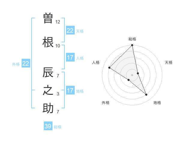 曽根 辰之助さんの総格は39画の5点!
