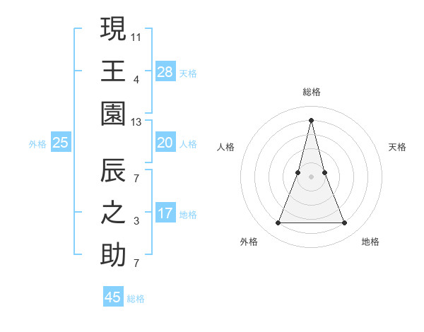 現王園 辰之助さんを姓名の画数から五運を鑑定
