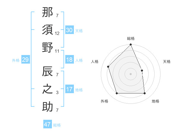 那須野 辰之助さんを姓名の画数から五運を鑑定