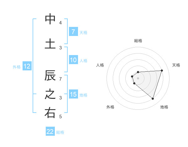 中土 辰之右さんを姓名の画数から五運を鑑定