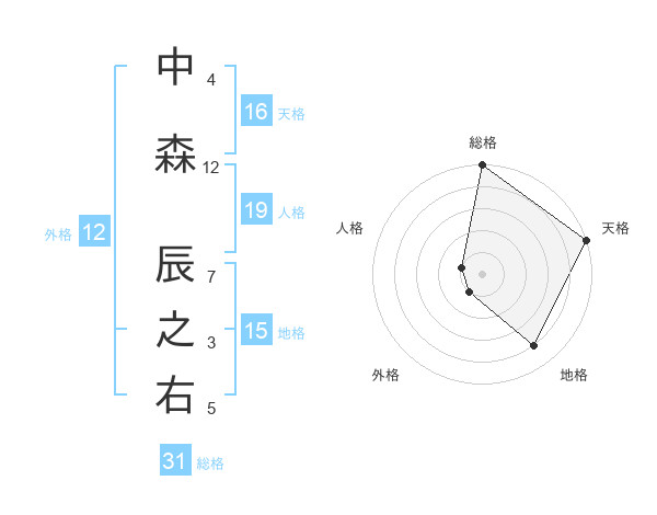 中森 辰之右さんを姓名の画数から五運を鑑定